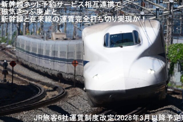新幹線ネット予約サービス相互連携で磁気きっぷ廃止と新幹線と在来線の運賃完全打ち切り実現か! JR旅客6社運賃制度改定(2028年3月以降予定)