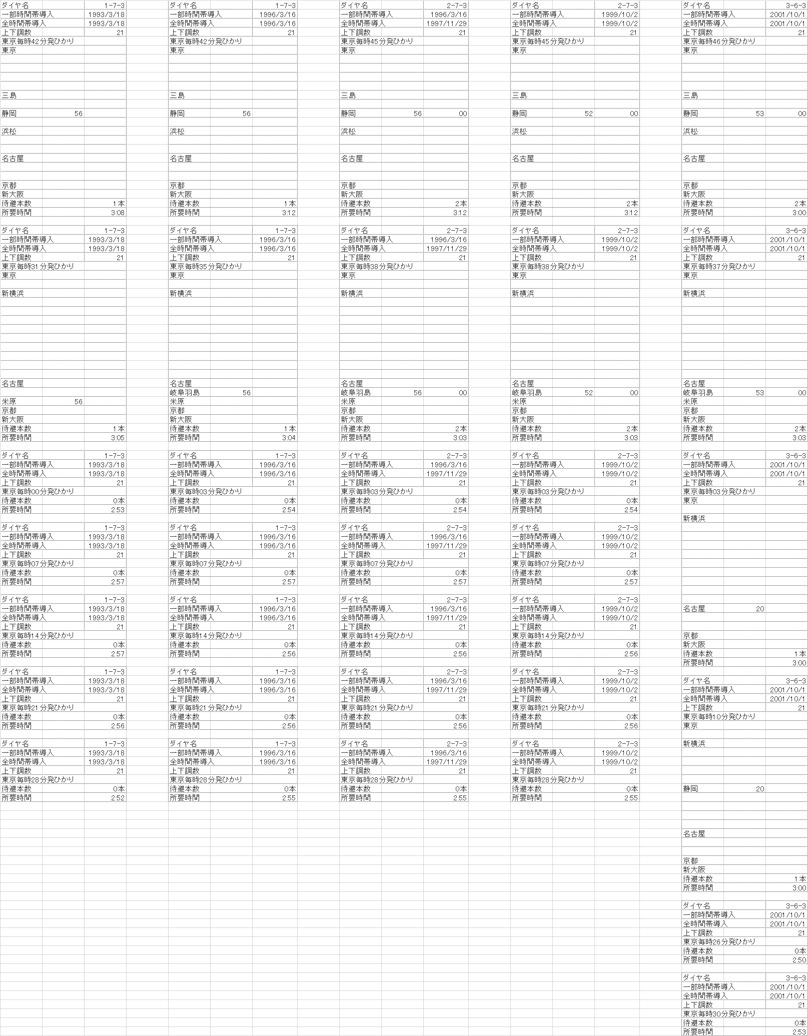 1993年3月18日~2003年9月30日の「ひかり」待避変遷