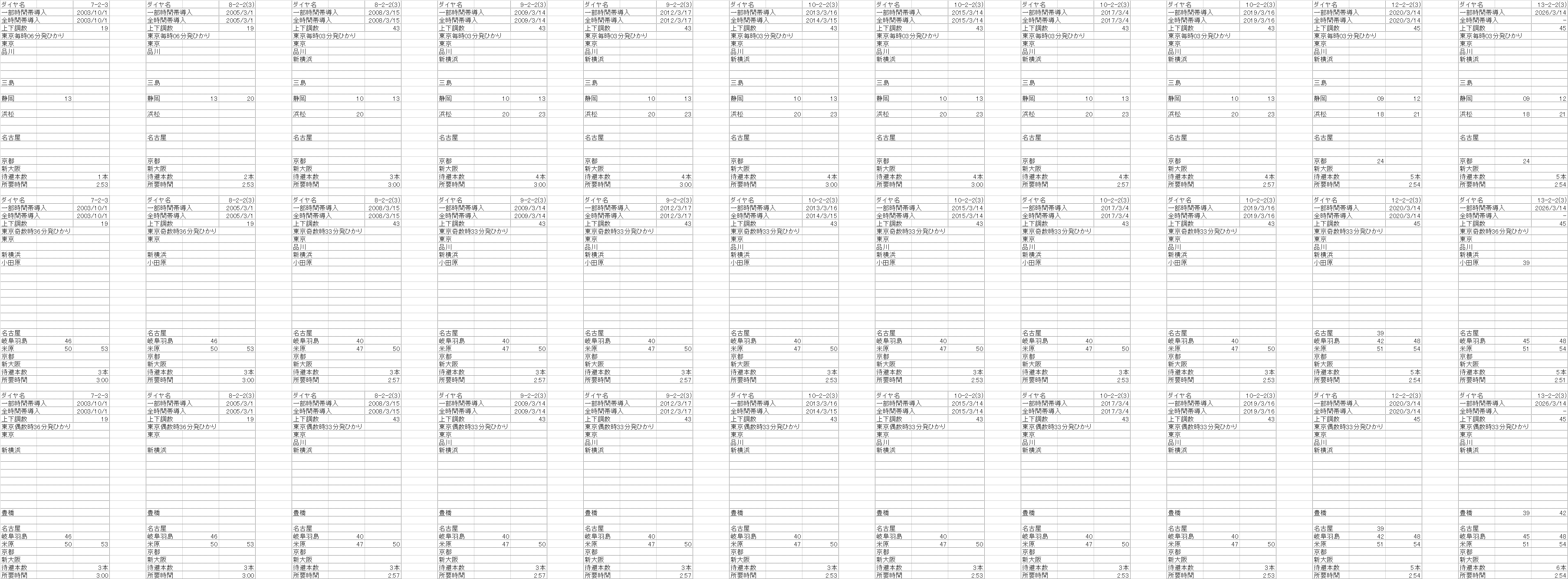 1993年3月18日以降の東海道新幹線「ひかり」が抜かれる列車と本数一覧です。