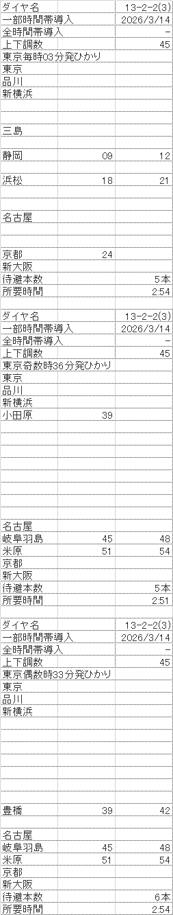 1993年3月17日までは「ひかり」は基本的に抜かされていなかったところ、2026年3月14日時点ではたいてい5本、一部で6本の「のぞみ」に抜かされるようになりました。