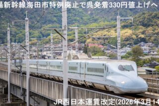 山陽新幹線海田市特例廃止詳細記事:山陽新幹線海田市特例廃止で呉発着330円値上げへ! JR西日本運賃改定(2026年3月14日)